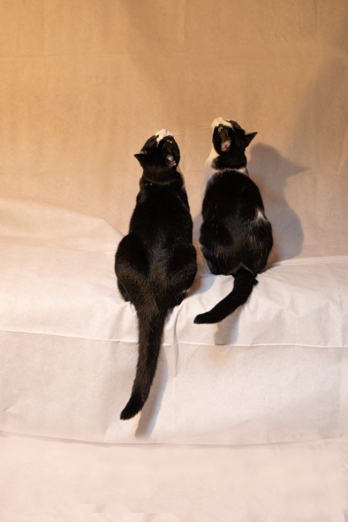 Bravo à la ( ou aux)photographe(s) qui a (ont) su capturer les attitudes artistiques et drôles de ces 2 chats . Vitesse et profondeur de champs bien maitrisés .
